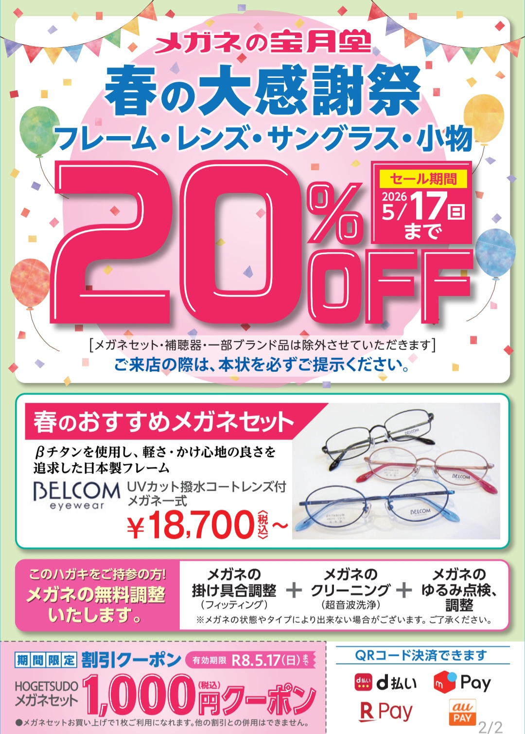いつもメガネの宝月堂をご利用いただき、誠にありがとうございます。
